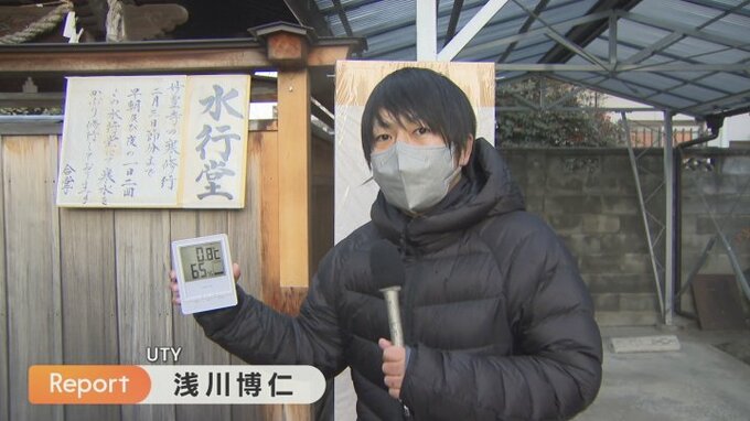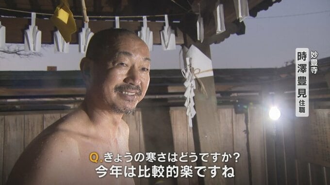 手元の温度計で0.8℃という厳しい寒さの中こちらの寺では寒中水行が行われています。