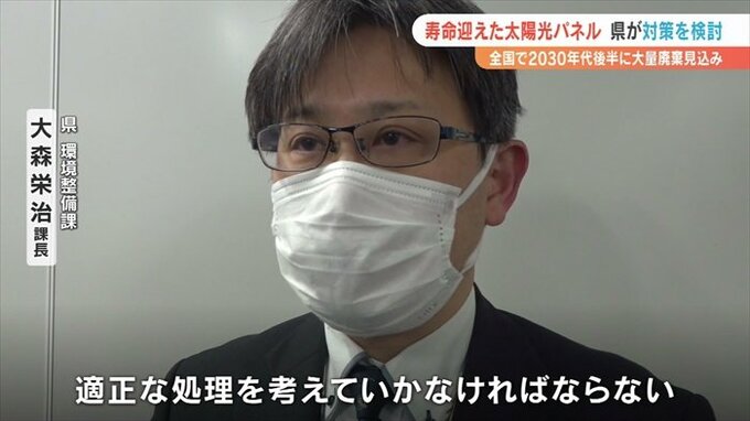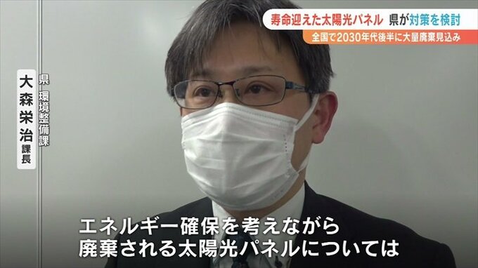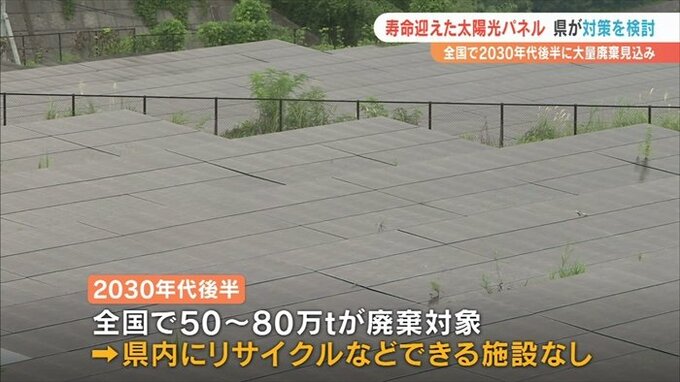 太陽光パネルの耐用年数は20年から30年ほどとされていて、2030年代後半には全国で50万から80万トンが廃棄対象となりますが、県内ではリサイクルやリユースができる施設はありません。