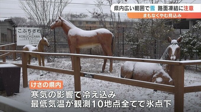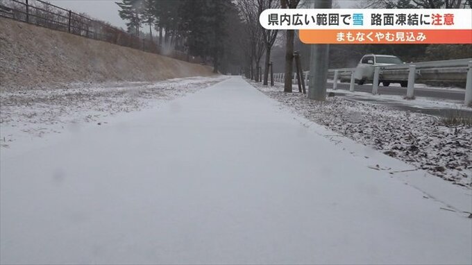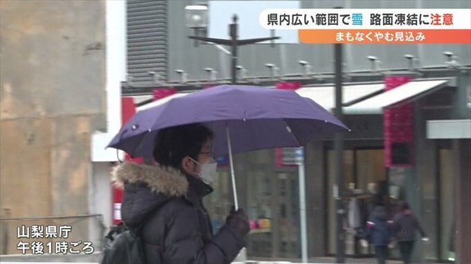 雪はまもなくやむ見込みですが、甲府地方気象台は路面の凍結などに注意を呼びかけています。