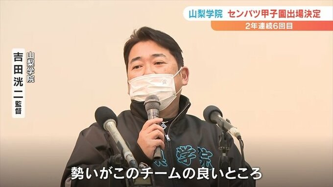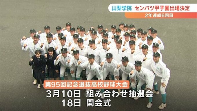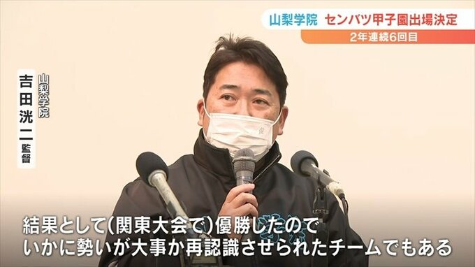 3月に開幕する春のセンバツ高校野球大会に山梨学院の2年連続の出場が決まりました。