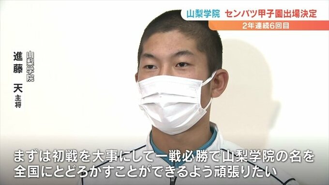 正式に選抜出場が決まり非常にうれしく思う。まずは初戦を大事にして、一戦必勝で山梨学院の名を全国にとどろかすことができるよう頑張りたい。