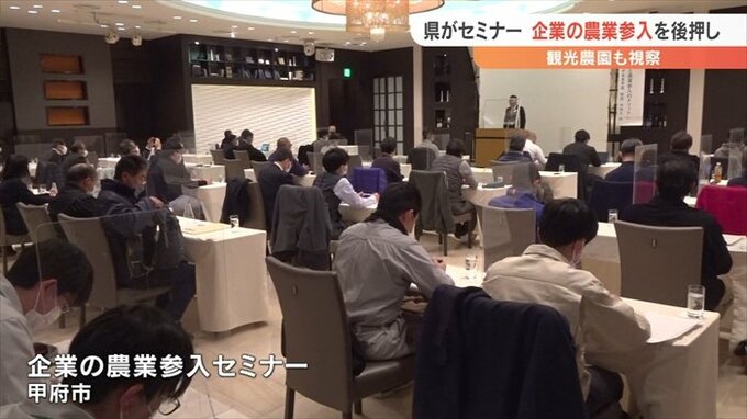 これは、企業の農業参入を後押ししようと山梨県が毎年開いているもので、県内の企業などから77人が参加しました。