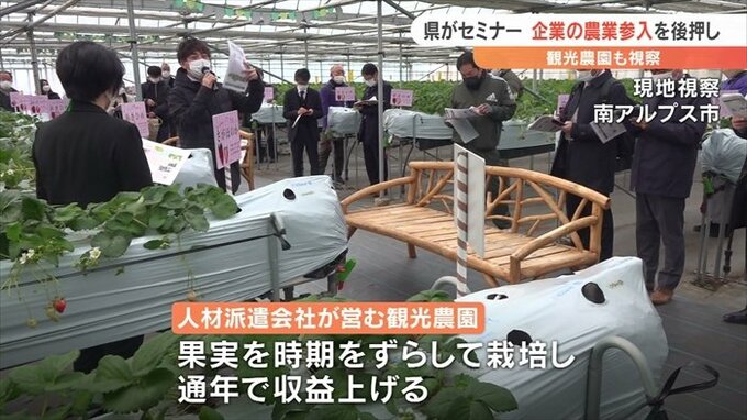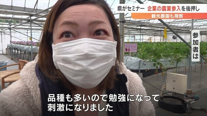 企業の農業への参入を進めるためのセミナーが開かれ、実際に企業が営む観光農園を視察しました。