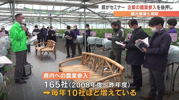 県によりますと、2008年度から2021年度までに県内では165社が農業に参入していて、毎年10社ほど増えているということです。