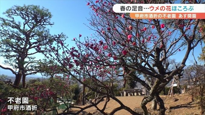 不老園は2月1日に開園し3月下旬まで、ウメの花が楽しめるということです。