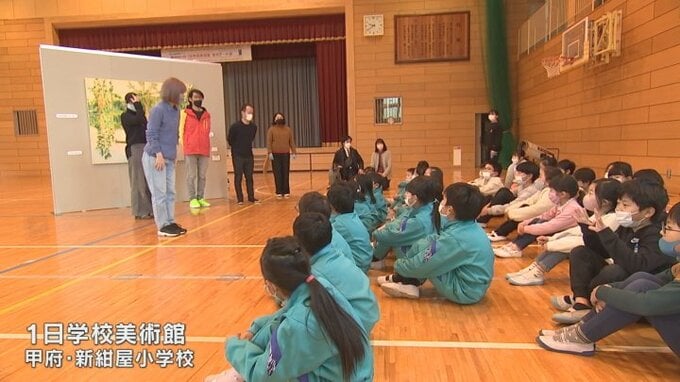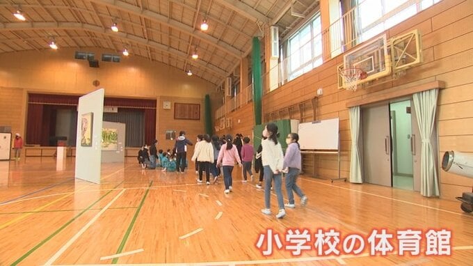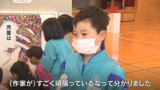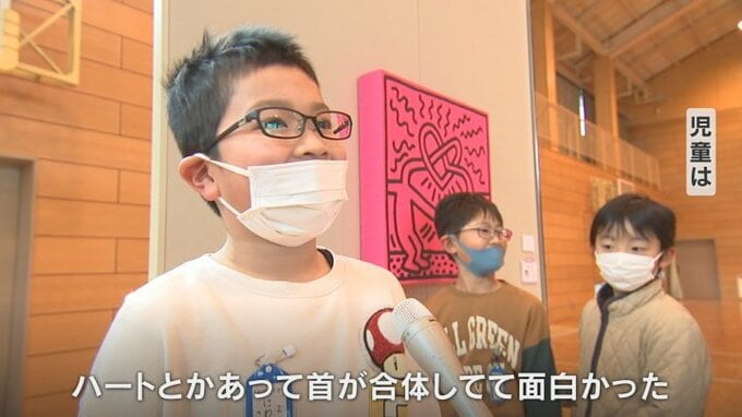 2月3日は児童や保護者が見て回り、児童たちは作品に込められた思いを考えながら、映像や立体作品といった現代アートを体験しました。