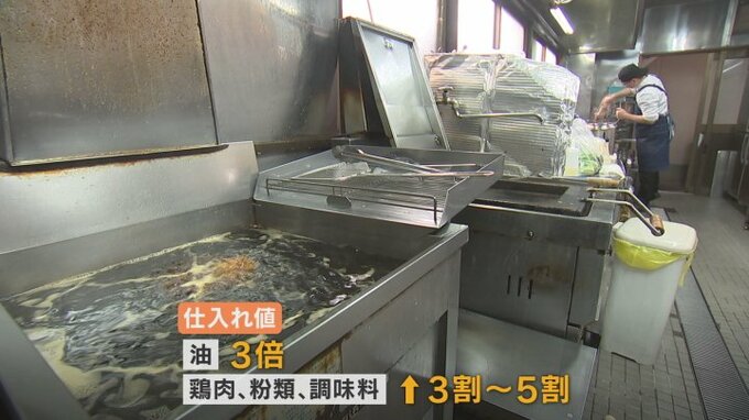 去年の春と比べると食材の仕入れ値は油が実に3倍に、鶏肉、粉類、それに調味料は3割から5割値上がりし、経費が重くのしかかります。