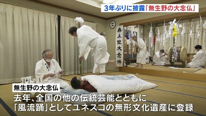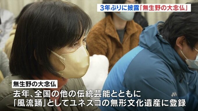 無生野の大念仏は2022年、全国の他の伝統芸能とともに「風流踊(ふりゅうおどり)」としてユネスコの無形文化遺産に登録され登録後は初めての披露となりました。
