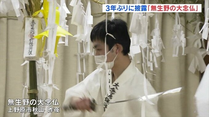 山梨県上野原市で続く伝統芸能で2022年、ユネスコの無形文化遺産に登録された無生野の大念仏が5日夜、3年ぶりに行われました。