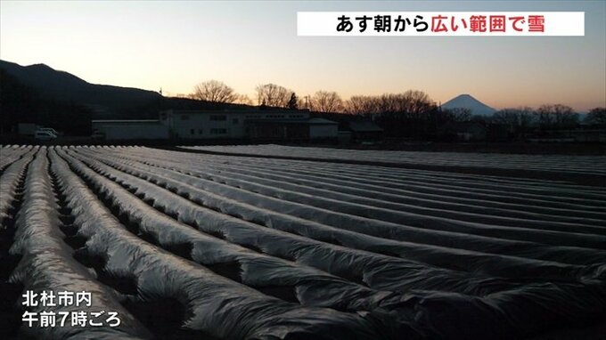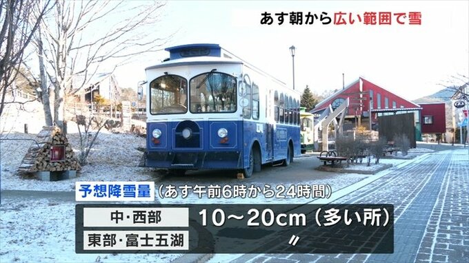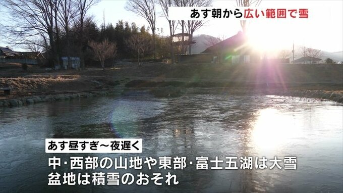 甲府地方気象台によりますと中・西部の山地や東部・富士五湖では10日の昼過ぎから夜遅くにかけて大雪となり、盆地も積雪となるおそれがあります。