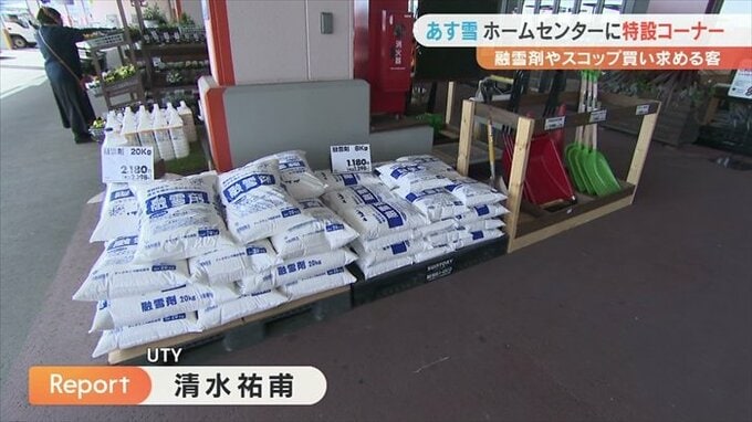 在庫が少なくなっている融雪剤なども近いうちに入荷する予定ですが、店側は店舗に商品があるうちに、早めの備えを呼びかけています。