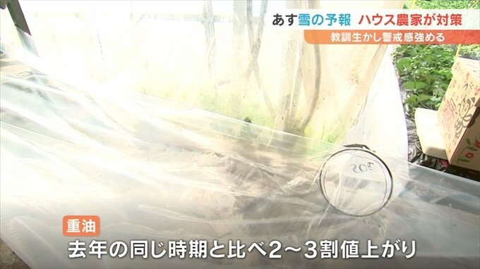 ボイラーで使用する重油は去年の同じ時期と比べ2割から3割ほど値上がりしたということですが、イチゴやハウスを守るために背に腹は代えられないとしています。