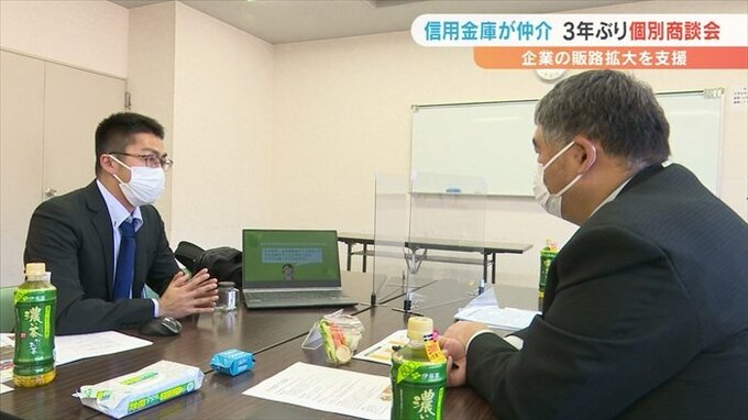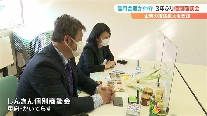 信用金庫が仲介役となって山梨県内外の企業の販路拡大を支援する個別商談会が、3年ぶりに甲府市で開かれました。