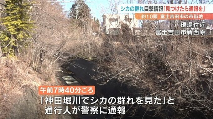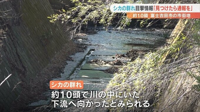 警察と富士吉田市によりますと、9日午前7時40分頃、富士吉田市新西原にある神田掘川でシカの群れを見たと通行人から警察に通報がありました。