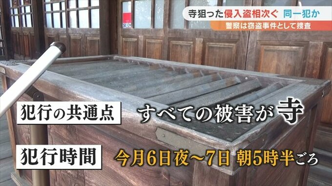 共通するのはすべての被害が寺で、犯行時間は、2月6日の夜から7日の朝5時半ごろとみられていることです。