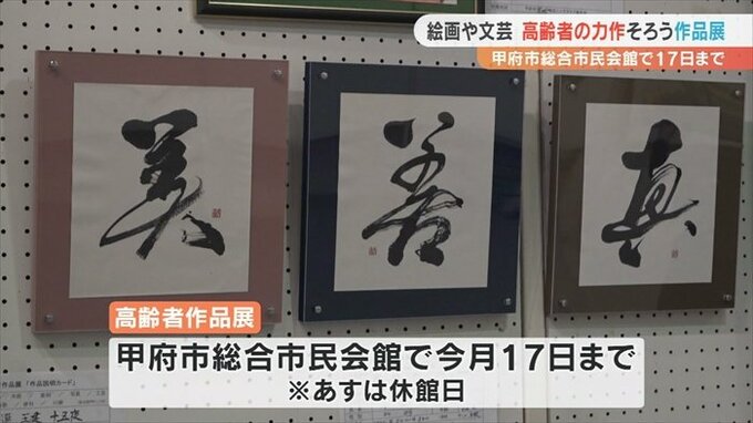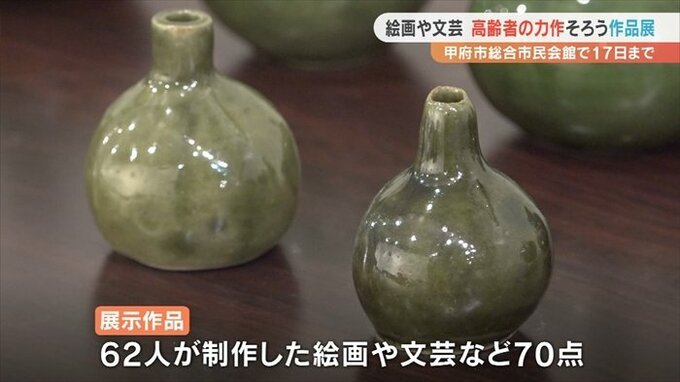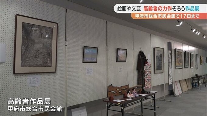 高齢者の力作およそ70点が並ぶ作品展が、甲府市の総合市民会館で始まりました。
