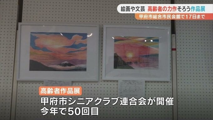 13日に始まった高齢者作品展は甲府市シニアクラブ連合会が開いたもので、2023年で50回目になりました。