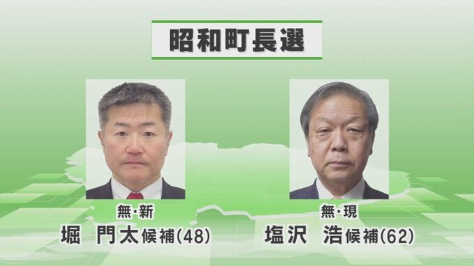 昭和町長選挙に立候補したのは、届け出順に新人で前の町議の堀門太さんと現職の塩沢浩さんの2人で前回2019年と同じ顔ぶれとなっています。