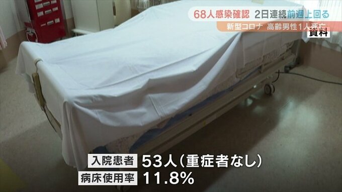 県内の感染者は2日連続で前の週の同じ曜日を上回りました。入院患者は53人で重症者はいません。病床使用率は11.8%となっています。