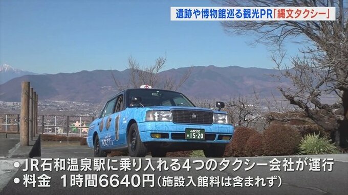 この「縄文タクシー」は山梨・長野両県の縄文時代の遺跡などが日本遺産に認定されて5年となるのを機に、県が観光資源として活用しようと開発した体験型の旅行商品「縄文アクティビティ」をPRするラッピングタクシーです。