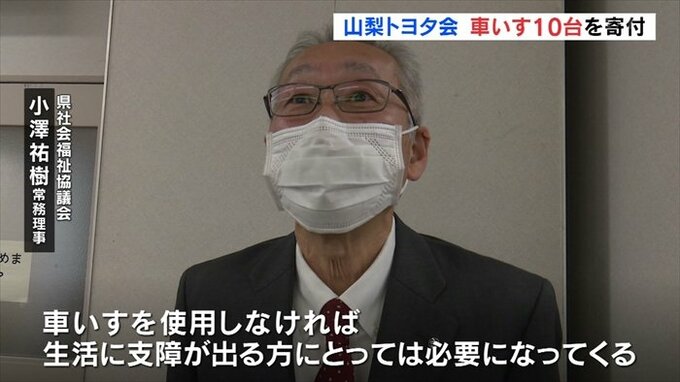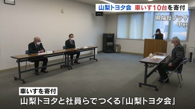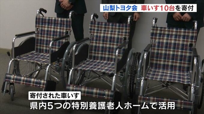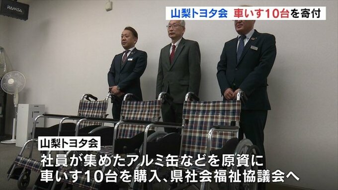 山梨トヨタとその社員でつくる団体が県の社会福祉協議会へ車いす10台を寄付しました。