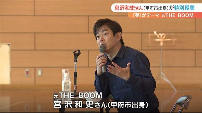 甲府市出身で元THE BOOMのボーカル宮沢和史さんが小学校で子どもたちに「夢」の大切さを語りました。
