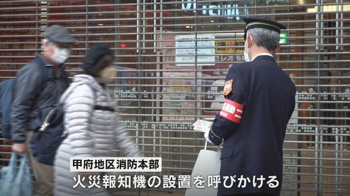 山梨県は火災報知機の設置率が全国平均を下回っているため甲府地区消防本部では、設置を呼びかけています。