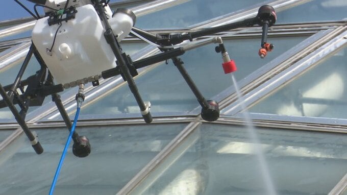 危険とコストの問題解消! ガラス張り巨大ドームの外壁清掃をドローンで 2023年3月9日(木) 18:51 国内 公園にある高さ約25mの巨大ドームが数年ぶりにきれいになりました。清掃を行ったのは・・・【写真で見る】山梨市の笛吹川フルーツ公園にある巨大ドームの上を飛ぶのはドローンです。これはドローンを使用した高圧…