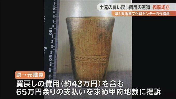 この問題は2019年、センターの元職員が県立考古博物館の縄文土器2点を第三者に売り渡したもので、県は買戻しの費用を含む65万円余りの支払いを求め、2021年甲府地裁に損害賠償訴訟を起こしました。