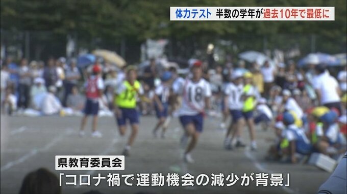 この結果を受け県教育委員会は「コロナ禍により運動機会が減少した事が背景にある」と分析しています。