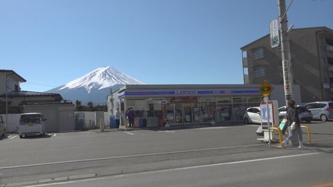富士河口湖町の河口湖駅近くにあるコンビニエンスストアの前は、富士山と店の看板を一緒に収めた写真が日本らしいと外国人観光客に人気の撮影スポットとなっています。