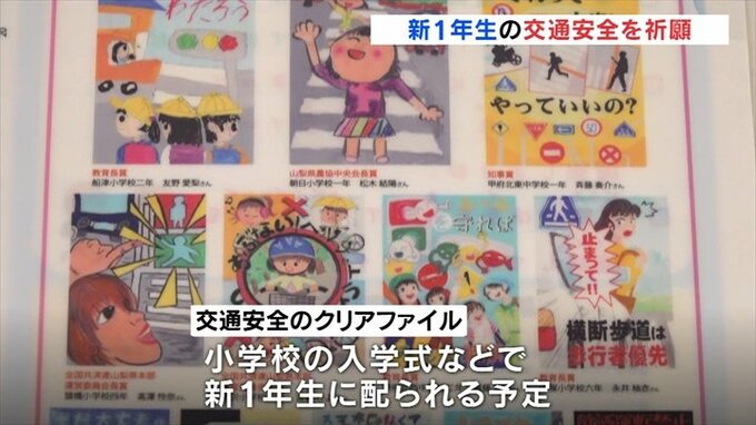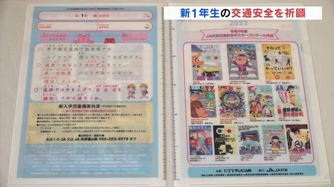 このクリアファイルは4月の入学式などで山梨県内の小学1年生に配られる予定です。