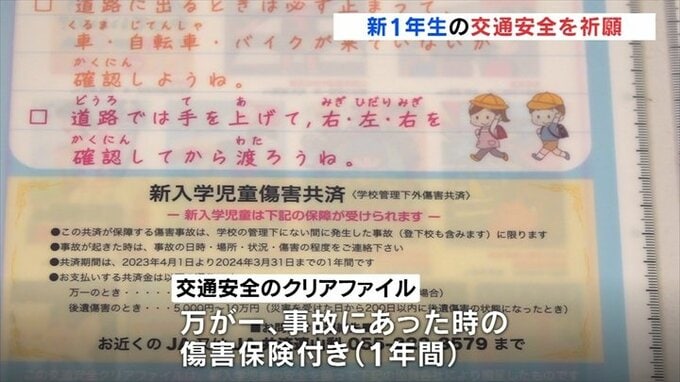 これはUTYの交通安全キャンペーンの一環として、毎年行われていて17日に関係者らが、新1年生およそ6500人に贈るクリアファイルをお祓いし交通安全を祈願しました。