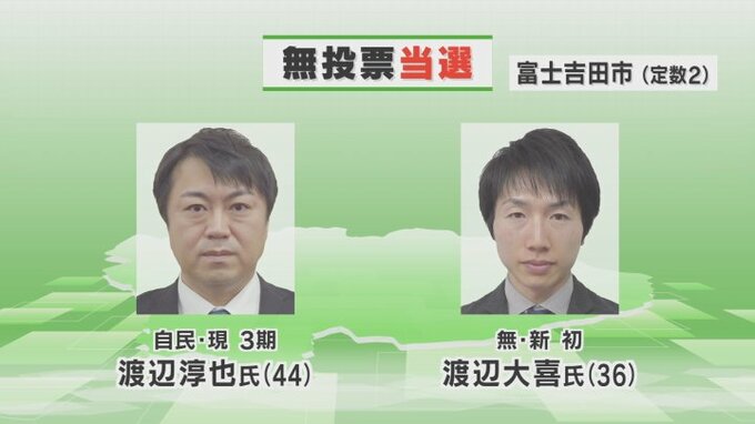 自民党の渡辺淳也さんが3期目の当選、無所属新人の渡辺大喜さんが初当選です。