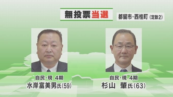 自民党の水岸富美男さんと自民党の杉山肇さんがいずれも4期目の当選を果たしています。