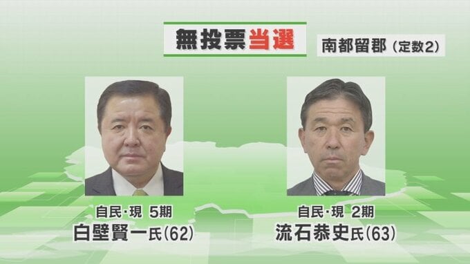 白壁賢一さんが5期目の当選、流石恭史さんが2期目の当選を果たし、自民党が2議席を独占しました。