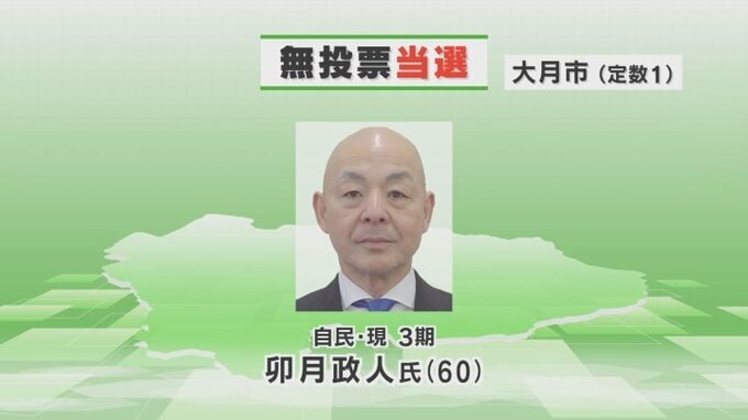 自民党の卯月政人さんが3期目の当選を果たしました。