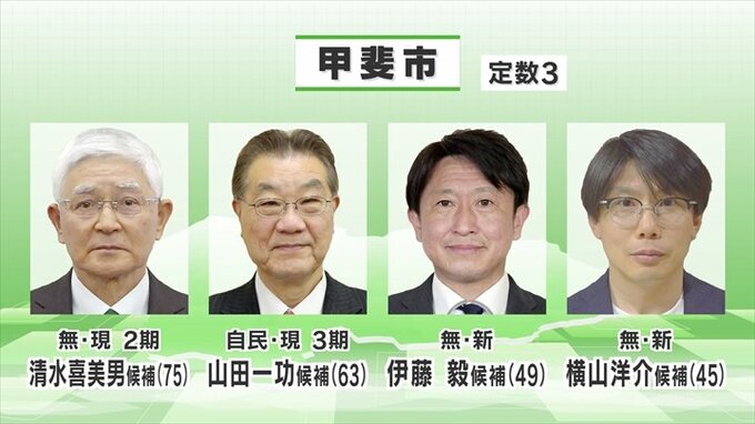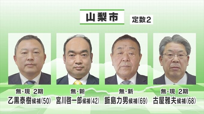 現職の浅川さんは自民党の県連会長代行、新人の福井さんは山教組=県教職員組合の元委員長です。飛矢﨑さんは れいわ新選組の推薦を受け、それぞれの組織などの支持を固めた選挙戦を展開する見通しです。