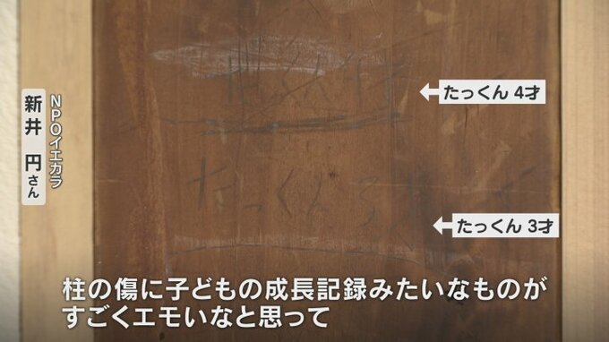 柱の傷に子どもの成長記録みたいなものが、すごくエモいなと思って。建物の歴史を残したい。