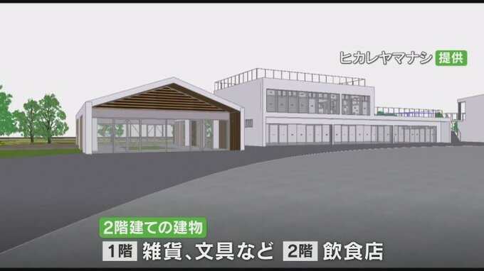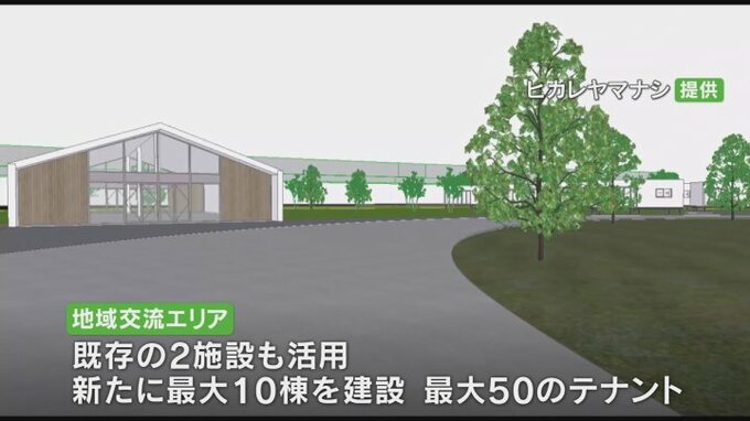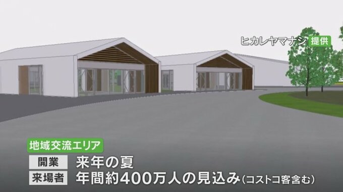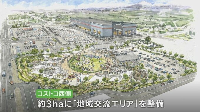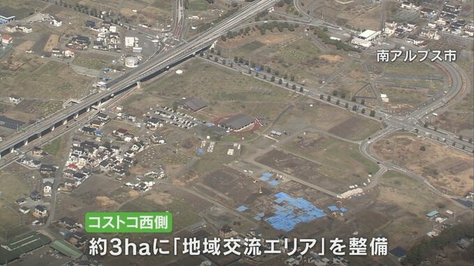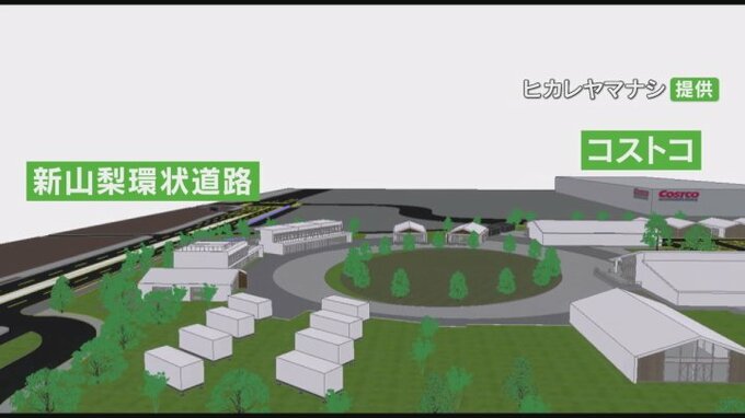 南アルプス市に県内で初出店となる会員制大型量販店コストコの西側およそ3haの敷地には地域の魅力を発信するテナントなどが入る地域交流エリアが整備されます。そのエリアが立体的な映像で示されました。