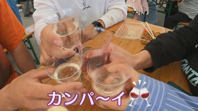 広場のステージでは「ききワイン対決」や「ぶどうはじき大会」など多彩なイベントも行われ、訪れた人はワインを片手に休日を満喫しました。