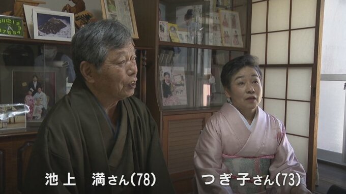 山梨県富士吉田市に住む池上満さん (78)と、つぎ子さん (73)の夫婦。