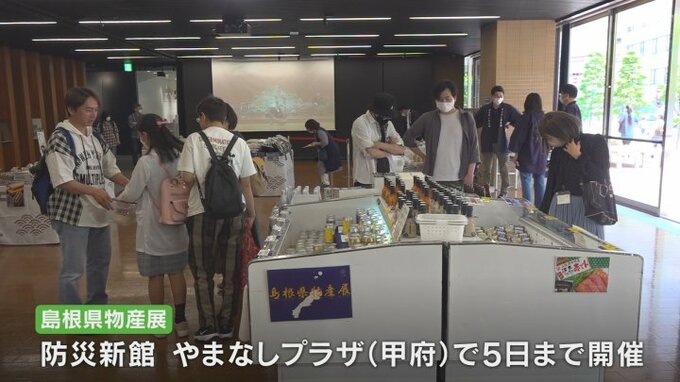 山梨県庁の防災新館で開かれている島根県物産展では、こうした島根名物約70品目が販売されています。