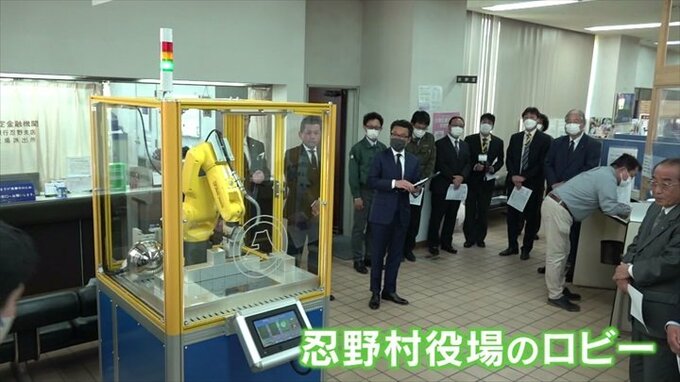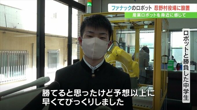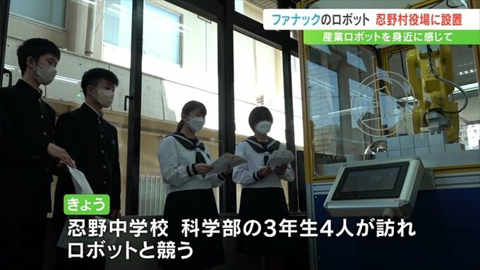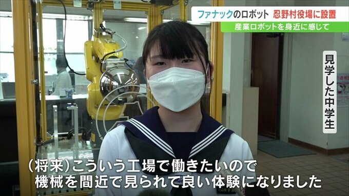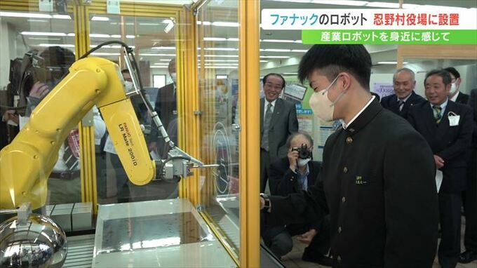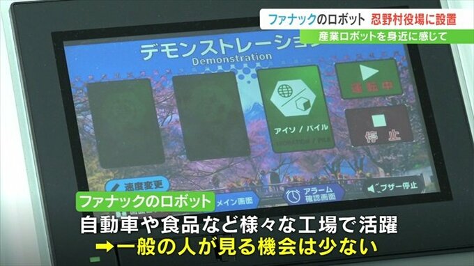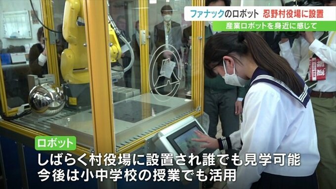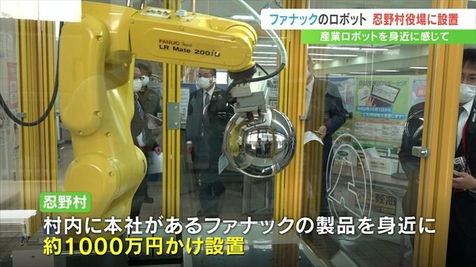村内に本社のある 世界的な産業用ロボットメーカー、ファナックの製品を身近に感じてもらおうと、村が約1000万円をかけ設置しました。