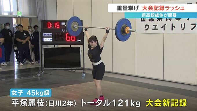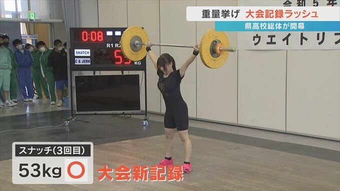 一方、男子では日川高校2年の小林光星選手がスナッチで大会新記録を出したほか、白根高校2年の飛知和零選手がクリーン&ジャークで大会記録を更新しました。