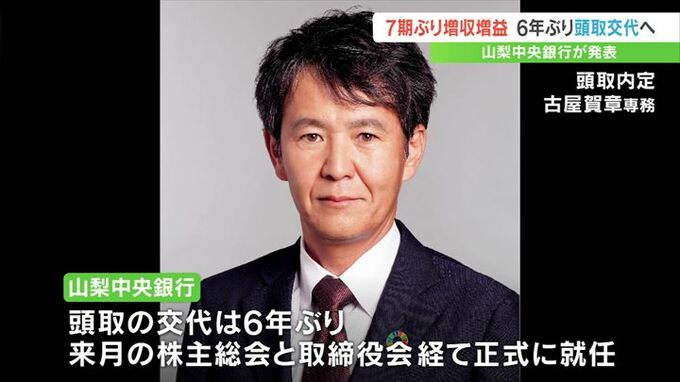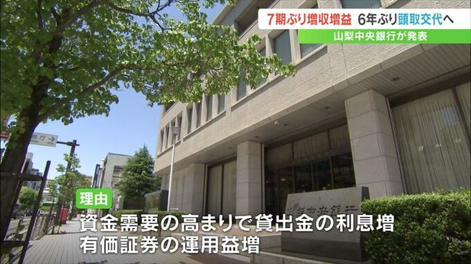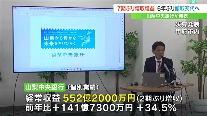 山梨中央銀行は昨年度の決算を発表し、7期ぶりの増収増益となりました。