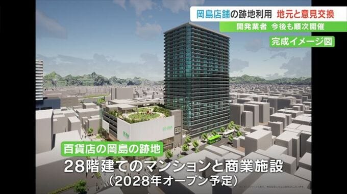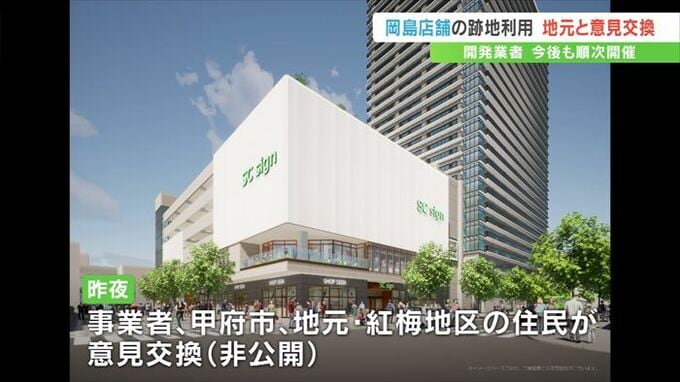 旧店舗の跡地には新たに28階建てのマンションと商業施設が2028年にオープンする予定で、昨夜は跡地開発を行う事業者や甲府市、それに地元紅梅地区の住民らによる意見交換会が非公開で行われました。