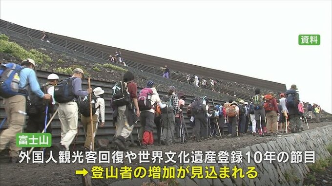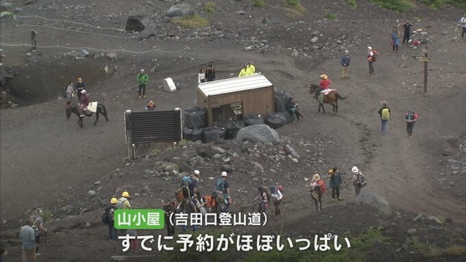 今年の富士山は外国人観光客の回復や世界文化遺産登録から10年の節目の年となることから夏山シーズン中の登山者の増加が見込まれ、吉田口登山道にある山小屋はすでに予約がほぼいっぱいとなっています。