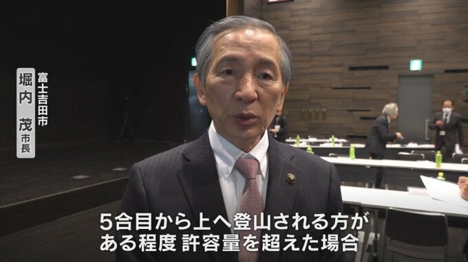 こうした状況から十分に休憩せずに一気に頂上へ登る弾丸登山の増加が懸念されていて、富士吉田市の堀内茂市長は取材に対し「登山者数の制限を検討すべき」という考えを示しました。