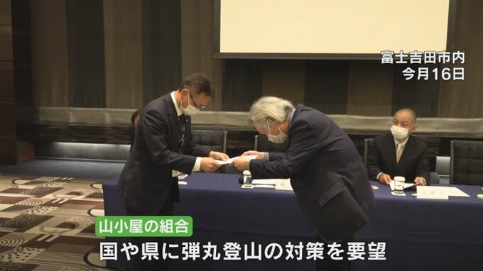 一方、吉田口登山道の山小屋関係者で作る組合も今週、国や県に対し弾丸登山への対策を要望しています。